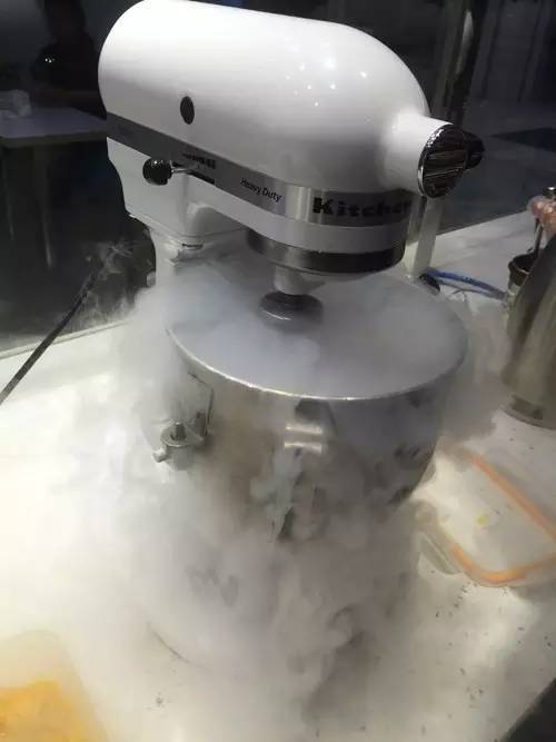 液氮冰淇淋:液氮-196度,當(dāng)它迅速蒸發(fā)時(shí),釋放出劇烈的煙霧。待霧開云散,冰淇淋也完成了急速成形,相比傳統(tǒng)冰淇淋,新鮮出爐的液氮冰淇淋的質(zhì)感緊實(shí),層次豐富,口感更佳。